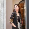 Kimono Obsidian Gold menghadirkan perpaduan kontras yang berkelas — warna dasar hitam pekat dengan aksen tenun keemasan yang hangat.