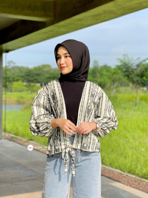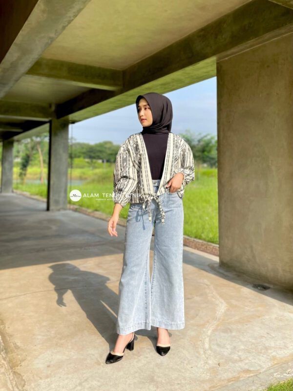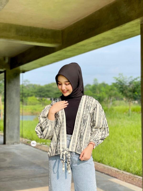 Menggabungkan keindahan warisan tenun dengan sentuhan gaya masa kini, outer ini memancarkan kesan anggun secara alami di setiap kesempatan.
